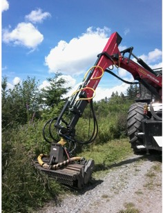 | Technische Details Astschere: Arbeitsbreite: 2,20 m Schnittstärke: 110 mm Arbeitsgeschwindigkeit: bis 2,0 km/h Arbeitshöhe: ca. 7 m Arbeitsweite: 6 m Antrieb hydraulisch: max 45 l/min Hydraulikdruck: 180 bar | ![]() |
